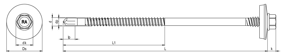 RP-7K-P, Sandwich-Bohrschraube, Sechskantkopf mit angepresster Scheibe, 5,5 x 126, Teilgewinde (L1), SW 8, Bimetall (Edelstahl A2/Stahl), RUSPERT®, E22, 100 Stk.