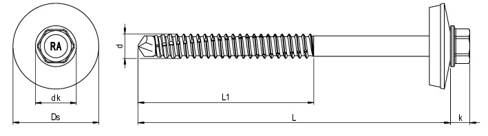RP-C3, Sandwich-Bohrschraube, Sechskantkopf mit angepresster Scheibe, 6,3 x 170, Teilgewinde (L1), SW 8, Bimetall (Edelstahl A2/Stahl), Nickel Strike, verzinkt blau, gleitbeschichtet, E22, 100 Stk.