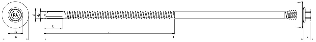 Bohrschraube zur Befestigung von Sandwichprofilen auf dickwandigen Stahlunterkonstruktionen.