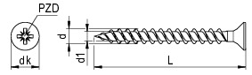 DNS®, Spanplattenschraube, Flachsenkkopf, 4,0 x 60, Vollgewinde, PZD 2, Stahl, verzinkt, blau passiviert, 500 Stk.