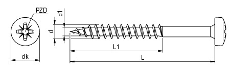 R2, Spanplattenschraube, Pan Head, 5,0 x 60, Teilgewinde (L1), PZD 2, Stahl, verzinkt, blau passiviert, 200 Stk.