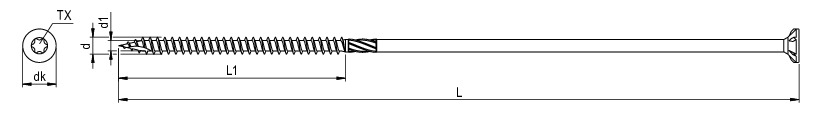 Teilgewinde mit Fräsrippen, Schneidkerbe und Schaftfräser (ab 6,0 x 120 mm).Vollgewinde ohne Fräsrippen auch für Beschlagmontage geeignet.