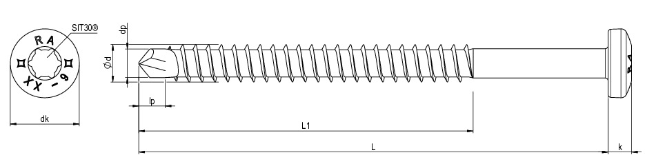 SPARIBO-LK, Holzbauschraube, Linsenkopf, 6,0 x 80, Teilgewinde (L1), SIT® 30, Edelstahl A2, gebeizt, passiviert, gleitbeschichtet, 100 Stk.