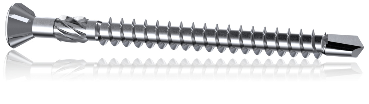 Holzbohrschraube zur randnahen, spaltfreien Befestigung von Holz, Holzwerkstoffprofilen und Holzprofilen auf Holz- und Aluminiumunterkonstruktionen im Innen- und Außenbereich.