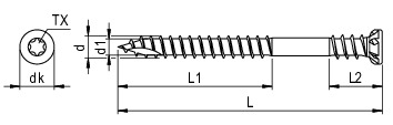 RT UT, Terrassenschraube, Flachsenkkopf, 5,0 x 80, Teilgewinde (L1), TX 20, Edelstahl A2, antik, gleitbeschichtet, 200 Stk.