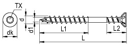Verlegeschraube, Flachsenkkopf, 4,5 x 60, Teilgewinde (L1), TX 20, Stahl, verzinkt, blau passiviert, 200 Stk.