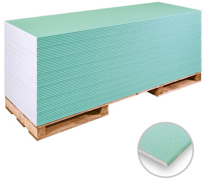 Die Rigips 1-Mann-Feuchtraumplatte Die Grüne 12,5 ist eine kartonummantelte Gipsplatte nach DIN EN 520, Typ H2. Sie ist kernimprägniert, hat eine verzögerte Wasseraufnahme und einen faserarmierten Gipskern sowie eine geschlossene Oberfläche. Für den Ausbau von Feuchträumen, Kantenausbildung halbrund, flexibel und platzsparend, Maße: 2.000 mm x 600 mm x 12,5 mm / 2.600 mm x 600 mm x 12,5 mm.