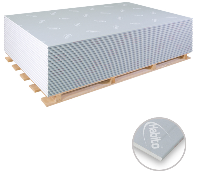Die Rigips Habito 12,5 ist eine kartonummantelte, massive Trockenbauplatte nach DIN EN 520, Typ DFIR. Sie hat einen faserarmierten und verfestigten Gipskern und eine geschlossene Oberfläche. Durch ihre erhöhte Oberflächenhärte ist sie besonders robust gegen mechanische Belastungen. Komfortable Befestigung selbst hoher Lasten ohne Dübel und Bohrer, für besondere Brand- und Schallschutzanforderungen.
