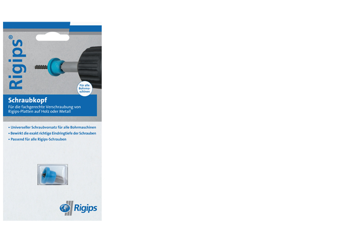 Der Rigips Schraubkopf ist ein Schraubvorsatz für Rigips Spezialschrauben mit Tiefenanschlag und automatischer Kupplung. Der Schraubkopf ist für jede Bohrmaschine geeignet.