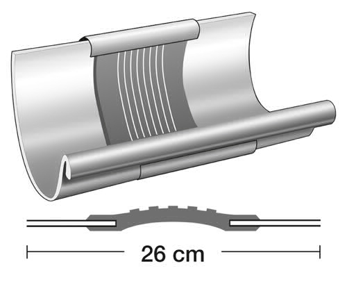 Diese einbaufertigen Dilatationselemente sind in allen handelsüblichen Größen für halbrunde Rinnen und Kastenrinnen erhältlich.