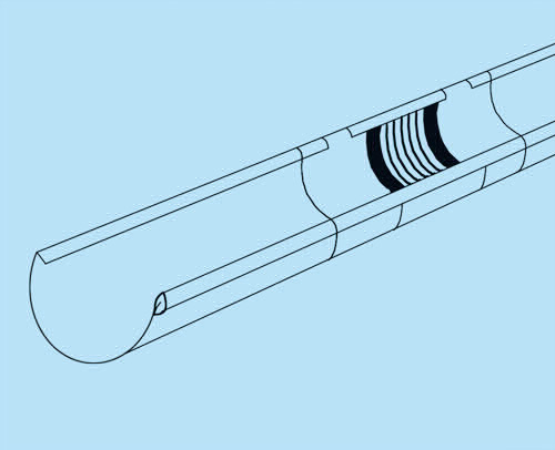 Diese einbaufertigen Dilatationselemente sind in allen handelsüblichen Größen für halbrunde Rinnen und Kastenrinnen erhältlich.
