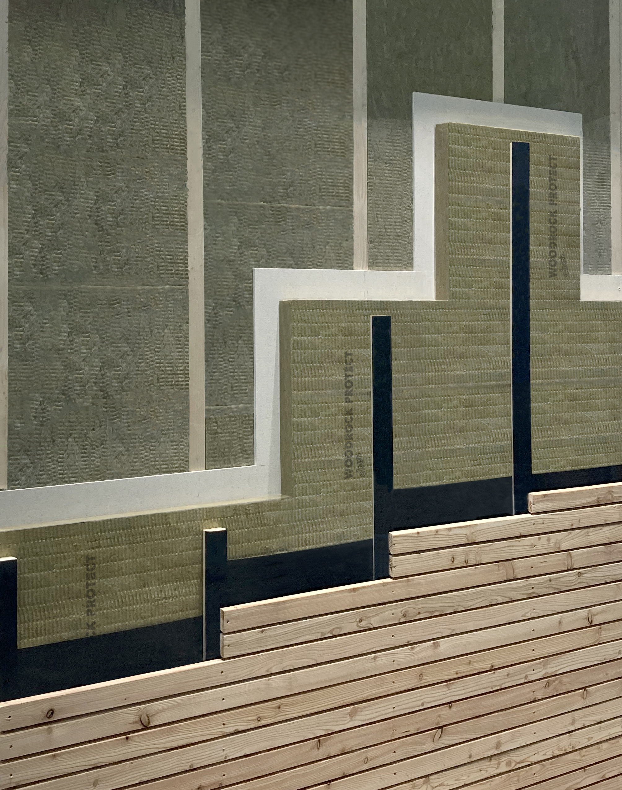 Nichtbrennbare, druckfeste Steinwolle-Dämmplatte für die Dämmung von Außenwänden als vorgehängte hinterlüftete Fassade vorzugsweise in Holzbauweise.