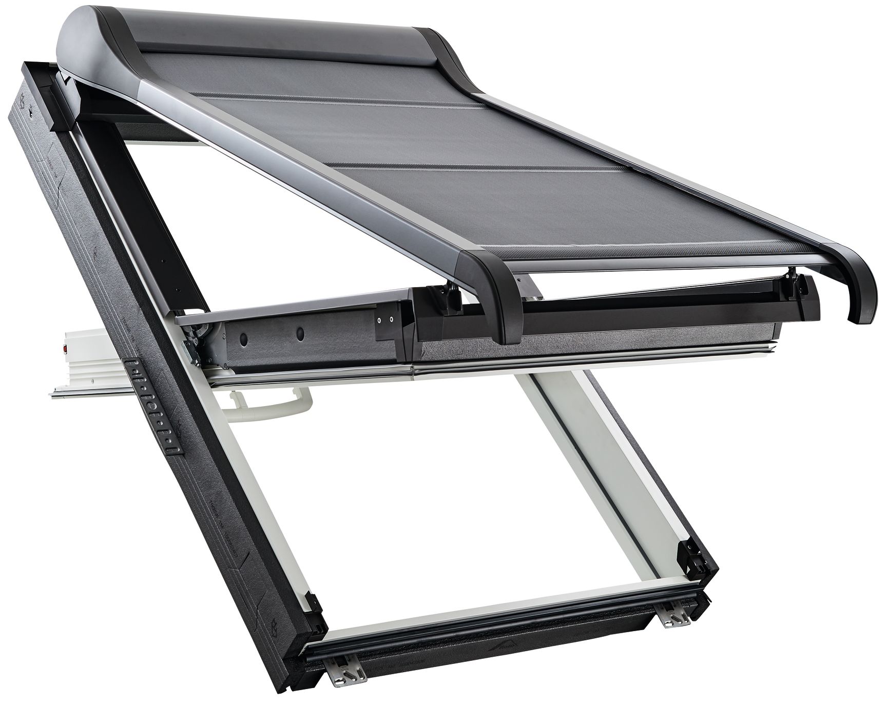 Eingearbeitete Aluprofile sorgen dafür, dass der Stoff straff läuft. Rahmen und Führungen sind baugleich mit dem Roto Außenrollladen, mit dem die Markise auch die flexiblen Bedienungsmöglichkeiten gemeinsam hat.