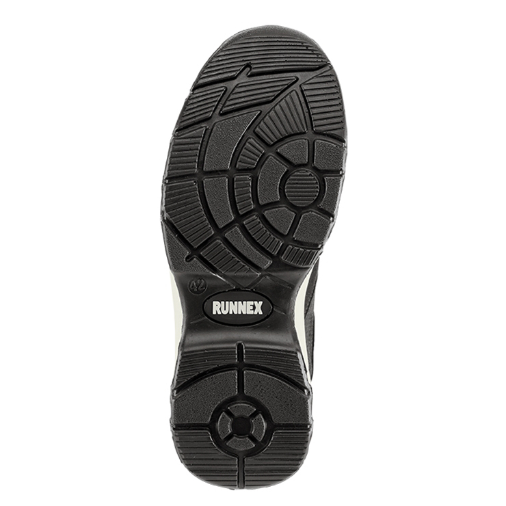 Obermaterial: Microfasermaterial, Lochung im Quartier und Blatt, Textileinsätze Futter: RUNNEX® SPORTY-Funktionsfutter Fersenfutter: RUNNEX® SOFTtouch Sohle: schwarze PU-Laufsohle mit weißer PU-Zwischensohle Dämpfung: RUNNEX® activeBumper Zehenschutzkappe: RUNNEX® Alu-Protection Durchtritthemmung: metallfrei Fußbett: ganzflächige Einlegesohle aus Poliyou® Passende Fußbetten: 5405 RUNNEX® Ersatzfußbetten aus Poliyou®