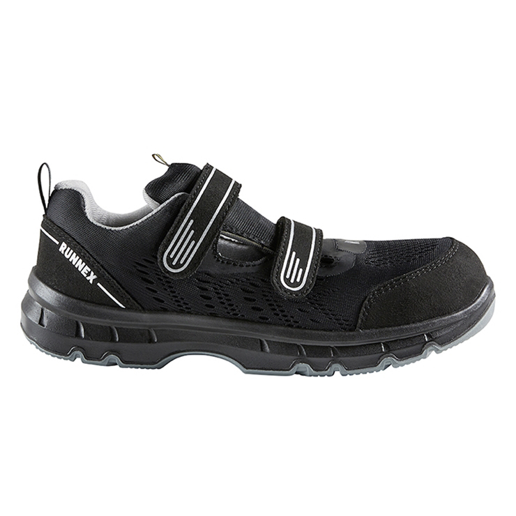 Die RUNNEX® FlexStar S1PS-Sandale mit ESD-Fähigkeit und SR Rutschhemmung eignet sich dank hoher Atmungsaktivität, Flexibilität und seines leichten Gewichts hervorragend für Industrie und Logistik. Bequemer Einstieg dank Klettverschlüssen und Fersenschlaufe. Die hochwertige Microfaser und das atmungsaktive Meshmaterial sorgen für optimalen Schutz des Trägers. Die SOFTtouch Ferse stabilisiert den Fuß und die Alu-Protection Kappe schützt die Zehen. Das Highlight aber ist die 2-Dichten PU/PU-Sohle mit RUNNEX® activeBumper, Fersen- und Vorfußdämpfung aus VESTAMID® PEBA-Schaum von EVONIK. RUNNEX® activeBumper garantiert beste Dämpfungseigenschaften sowohl im Fersen- als auch im Vorfußbereich. Der VESTAMID® PEBA-Schaum von EVONIK hat eine deutlich höhere Energierückgabe als vergleichbare Materialien und man ist auf allen Untergründen gut und sicher unterwegs. Der RUNNEX® FlexStar Artikel 5116 vermittelt ein angenehm, entspanntes Tragegefühl und ist ein wertvoller, passiver Beitrag zu mehr Sicherheit! Die Sicherheitsklettsandalen sind verfügbar in den Größen 36-48 und sind für orthopädische Einlagen zertifiziert.