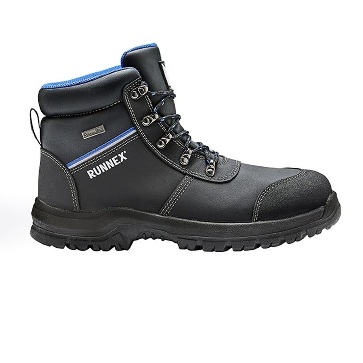 Obermaterial: hydrophobiertes Glattleder, abriebfestes Spitzenschutzmaterial Futter: RUNNEX® AIRSTREAM-Funktionsfutter, Sympatex® Membran Sohle: 2-Dichten PU/PU-Sohle Dämpfung: RUNNEX® activeBumper Zehenschutzkappe: RUNNEX® Alu-Protection Durchtritthemmung: metallfrei Fußbett: ganzflächige Einlegesohle aus Poliyou®