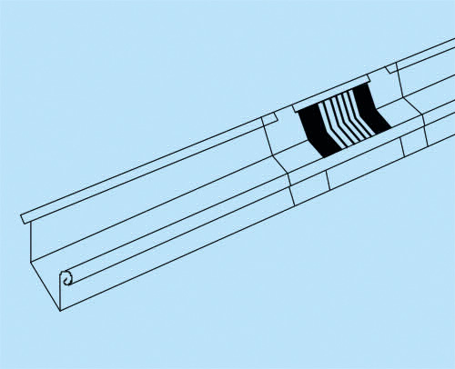 Diese einbaufertigen Dilatationselemente sind in allen handelsüblichen Größen für halbrunde Rinnen und Kastenrinnen erhältlich.