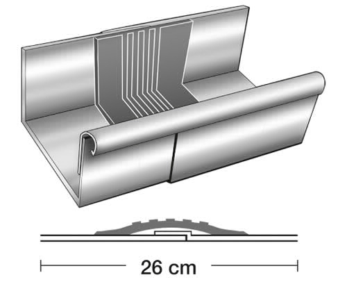 Diese einbaufertigen Dilatationselemente sind in allen handelsüblichen Größen für halbrunde Rinnen und Kastenrinnen erhältlich.