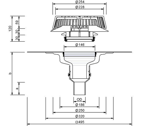 SitaDSS Profi Druckströmungsgully, aus Polyurethan, wärmegedämmt, nach DIN EN 1253-2 mit erhöhtem Qualitätsstandard gemäß RAL-Gütezeichen GZ-694, mit Airstop inklusive Kiesfang, in den Nennweiten DN 56 oder DN 70. Zum direkten Anschluss an PE-Rohre (Stumpfschweißung oder mit Elektroschweißmuffe), zur Druckströmungsentwässerung, mit großer Wunschanschlussmanschette (495 x 495 mm) passend zur Dachabdichtung, und mit Fixierring zur zusätzlichen Sicherung der Anschlussmanschette und zur Aufnahme des Airstops inklusive Kiesfang, liefern und fachgerecht einbauen.