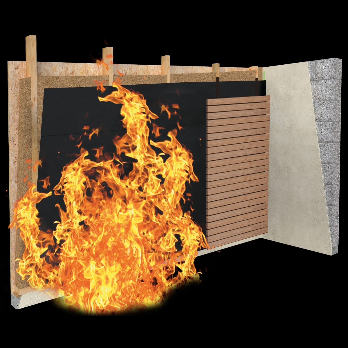 - Hinter Lückenschalungen nicht sichtbar: Schwarzes Vlies mit Aufdruck im Überlappungsbereich