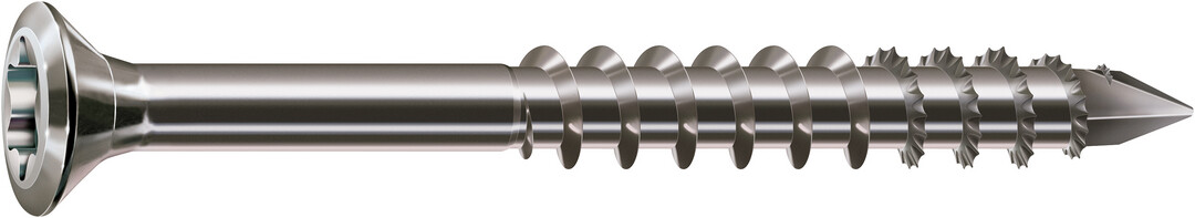 - SPAX CUT-Spitze: punktgenaues Ansetzen, ermöglicht Einschrauben ohne Vorbohren (holzabhängig), verringert wirkungsvoll ein Spleißen des Holzes