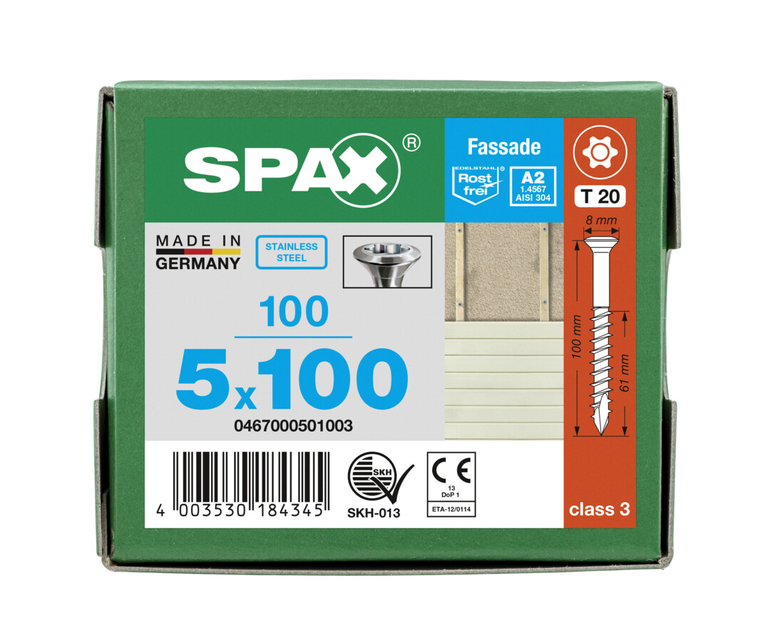 - SPAX CUT-Spitze: punktgenaues Ansetzen, ermöglicht Einschrauben ohne Vorbohren (holzabhängig), verringert wirkungsvoll ein Spleißen des Holzes
