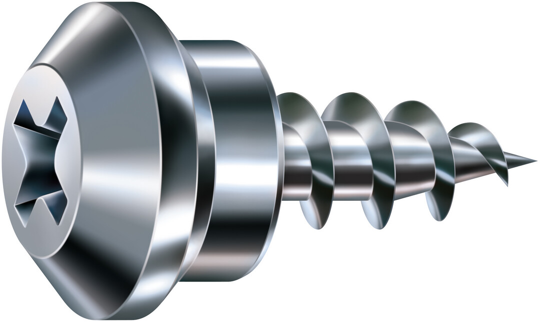 - Scharfes, breittragendes 40º-Gewinde, bis unter den Kopf