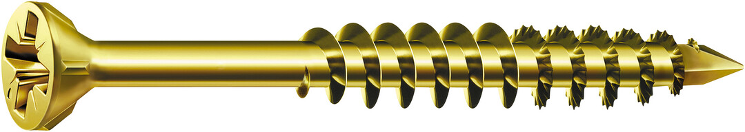 - SPAX CUT-Spitze: punktgenaues Ansetzen, ermöglicht Einschrauben ohne Vorbohren (holzabhängig), verringert wirkungsvoll ein Spleißen des Holzes
