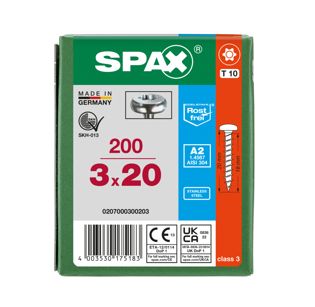 3x20mm, T10, VG, A2, 200/Pak