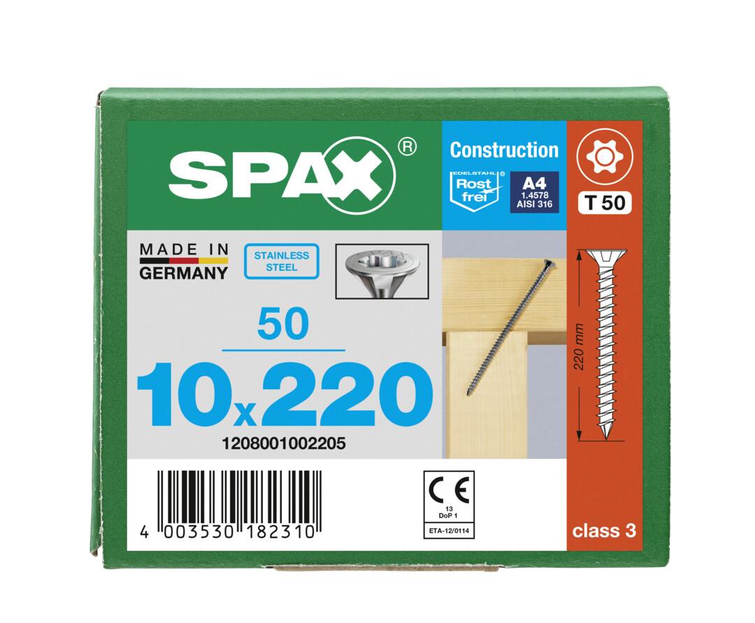 - SPAX CUT-Spitze: punktgenaues Ansetzen, ermöglicht Einschrauben ohne Vorbohren (holzabhängig), verringert wirkungsvoll ein Spleißen des Holzes
