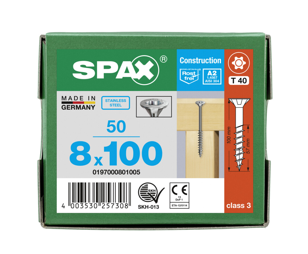 - 4CUT: Ohne Vorbohren (holzabhängig), ihre Spitze verringert wirkungsvoll die Spaltwirkung. Vierkant verdrängt die Fasern des Holzes und reduziert das Einschraubdrehmoment.