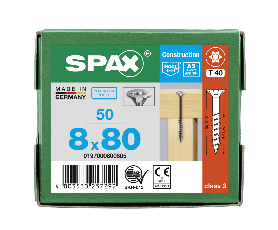 - 4CUT: Ohne Vorbohren (holzabhängig), ihre Spitze verringert wirkungsvoll die Spaltwirkung. Vierkant verdrängt die Fasern des Holzes und reduziert das Einschraubdrehmoment.