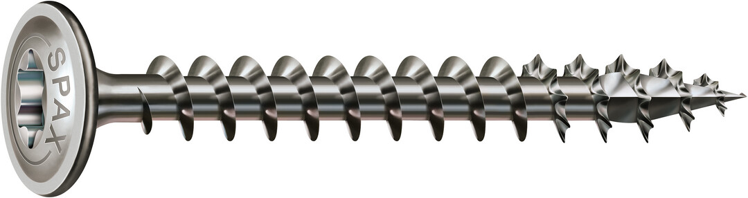 - 4CUT: Ohne Vorbohren (holzabhängig), ihre Spitze verringert wirkungsvoll die Spaltwirkung. Vierkant verdrängt die Fasern des Holzes und reduziert das Einschraubdrehmoment.