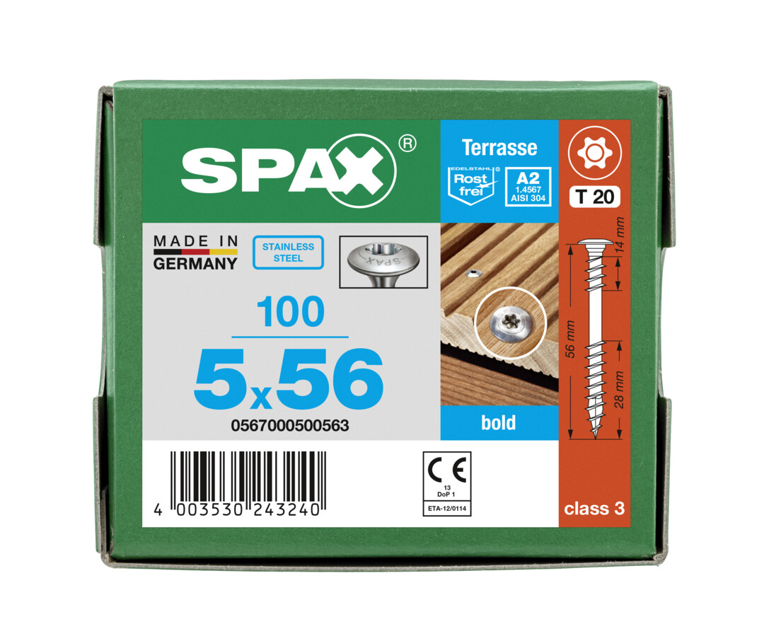 - SPAX CUT-Spitze: punktgenaues Ansetzen, ermöglicht Einschrauben ohne Vorbohren (holzabhängig), verringert wirkungsvoll ein Spleißen des Holzes