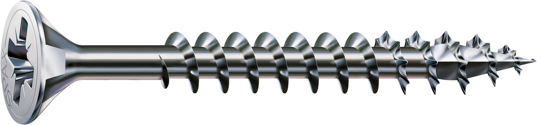 - 4CUT: Ohne Vorbohren (holzabhängig), ihre Spitze verringert wirkungsvoll die Spaltwirkung. Vierkant verdrängt die Fasern des Holzes und reduziert das Einschraubdrehmoment.