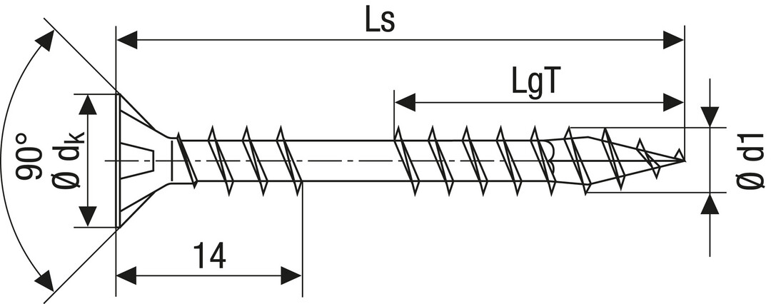- 4CUT: Ohne Vorbohren (holzabhängig), ihre Spitze verringert wirkungsvoll die Spaltwirkung. Vierkant verdrängt die Fasern des Holzes und reduziert das Einschraubdrehmoment.