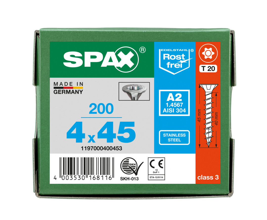 - 4CUT: Ohne Vorbohren (holzabhängig), ihre Spitze verringert wirkungsvoll die Spaltwirkung. Vierkant verdrängt die Fasern des Holzes und reduziert das Einschraubdrehmoment.