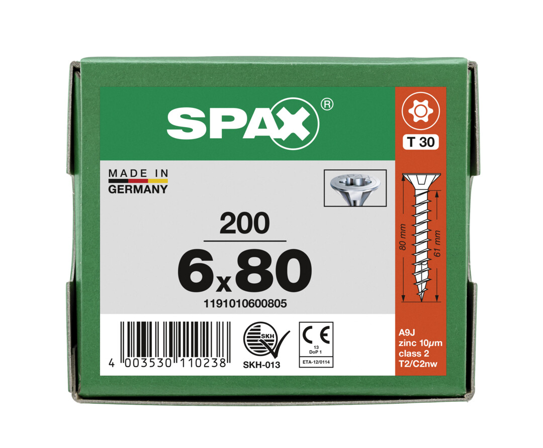 - 4CUT: Ohne Vorbohren (holzabhängig), ihre Spitze verringert wirkungsvoll die Spaltwirkung. Vierkant verdrängt die Fasern des Holzes und reduziert das Einschraubdrehmoment.