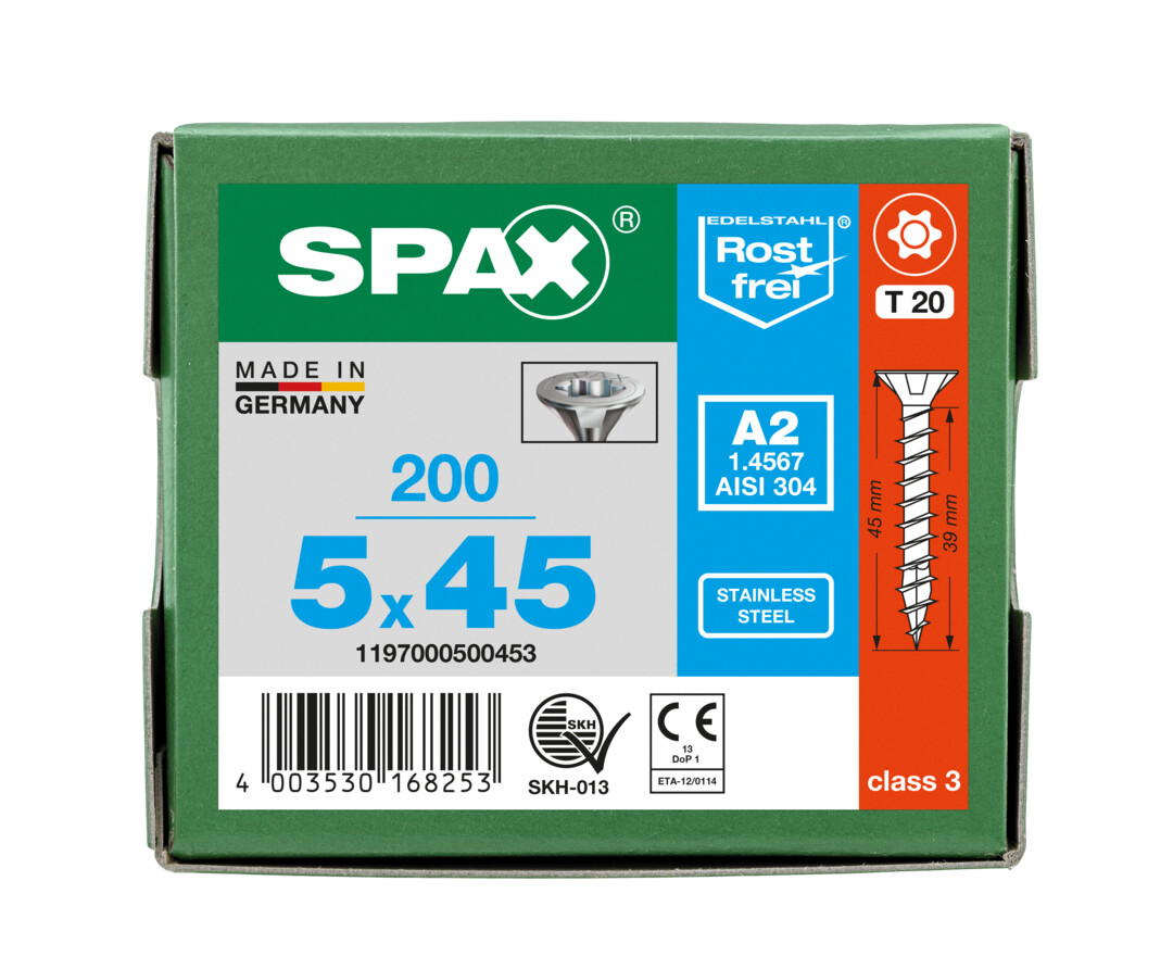 - 4CUT: Ohne Vorbohren (holzabhängig), ihre Spitze verringert wirkungsvoll die Spaltwirkung. Vierkant verdrängt die Fasern des Holzes und reduziert das Einschraubdrehmoment.