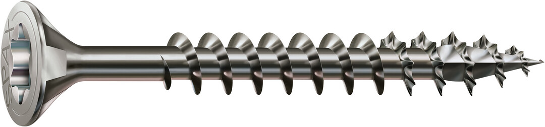 - 4CUT: Ohne Vorbohren (holzabhängig), ihre Spitze verringert wirkungsvoll die Spaltwirkung. Vierkant verdrängt die Fasern des Holzes und reduziert das Einschraubdrehmoment.