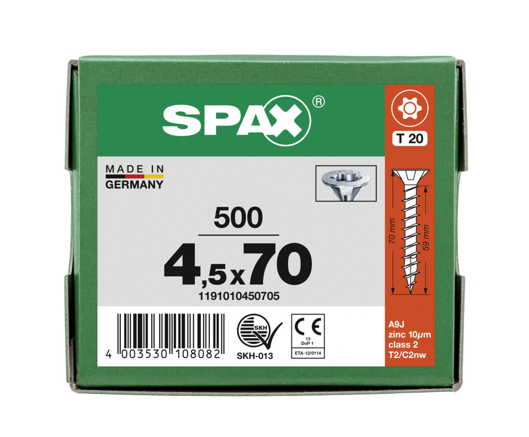 - 4CUT: Ohne Vorbohren (holzabhängig), ihre Spitze verringert wirkungsvoll die Spaltwirkung. Vierkant verdrängt die Fasern des Holzes und reduziert das Einschraubdrehmoment.