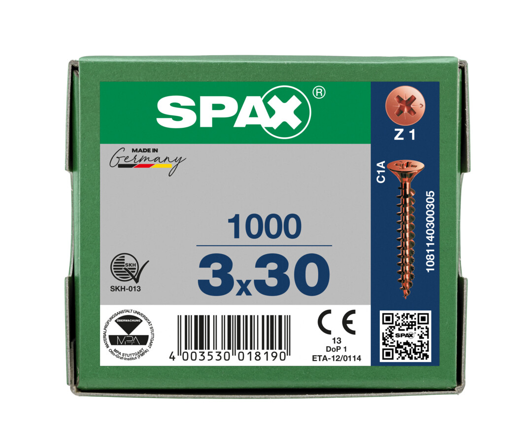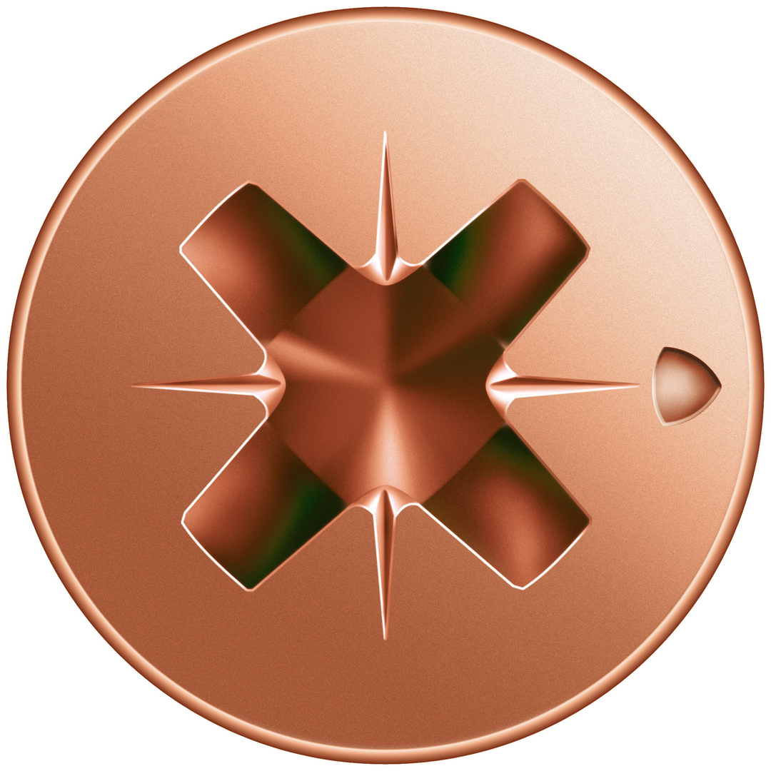- 4CUT: Ohne Vorbohren (holzabhängig), ihre Spitze verringert wirkungsvoll die Spaltwirkung. Vierkant verdrängt die Fasern des Holzes und reduziert das Einschraubdrehmoment.