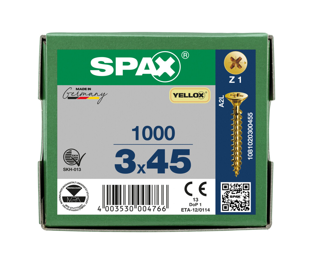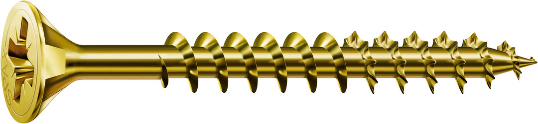 - 4CUT: Ohne Vorbohren (holzabhängig), ihre Spitze verringert wirkungsvoll die Spaltwirkung. Vierkant verdrängt die Fasern des Holzes und reduziert das Einschraubdrehmoment.
