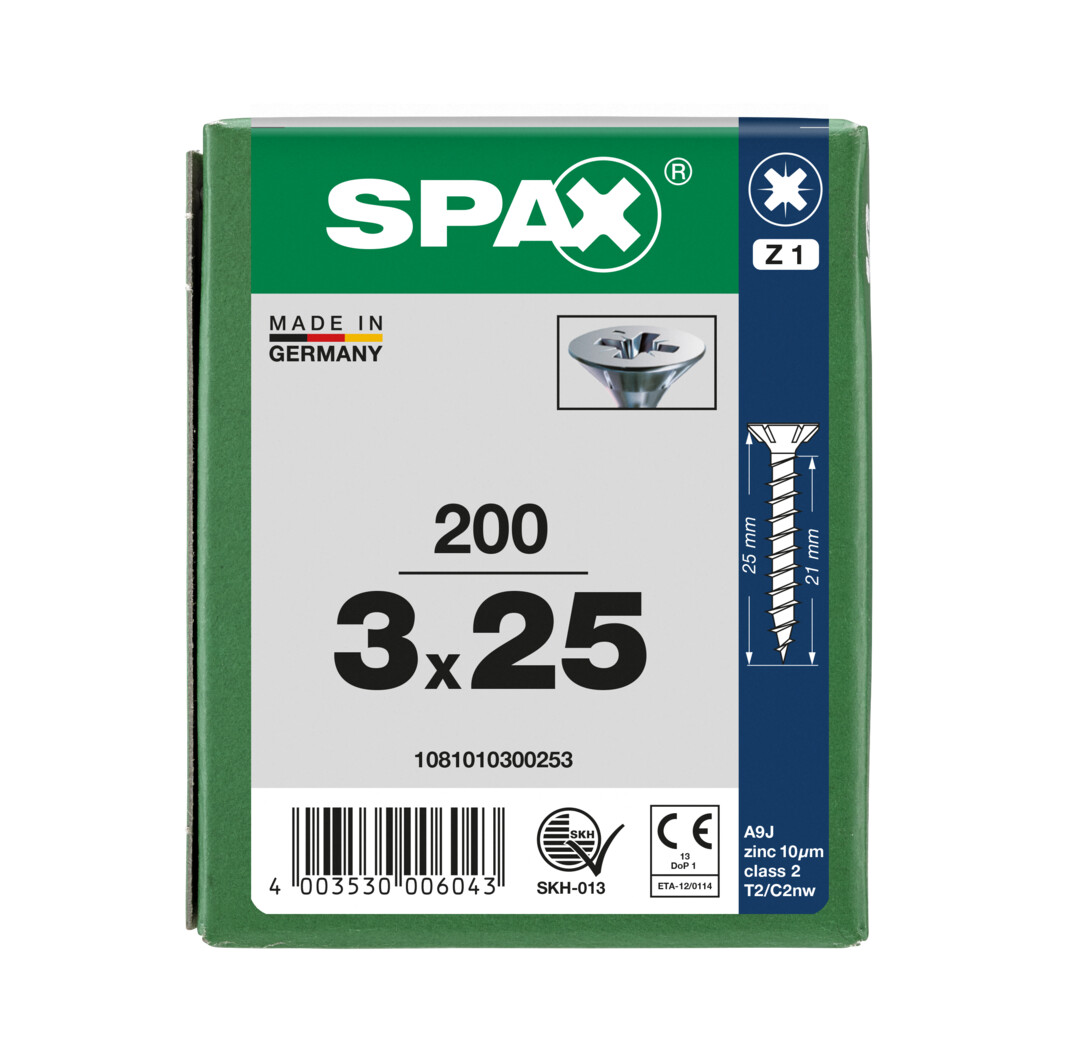 - 4CUT: Ohne Vorbohren (holzabhängig), ihre Spitze verringert wirkungsvoll die Spaltwirkung. Vierkant verdrängt die Fasern des Holzes und reduziert das Einschraubdrehmoment.