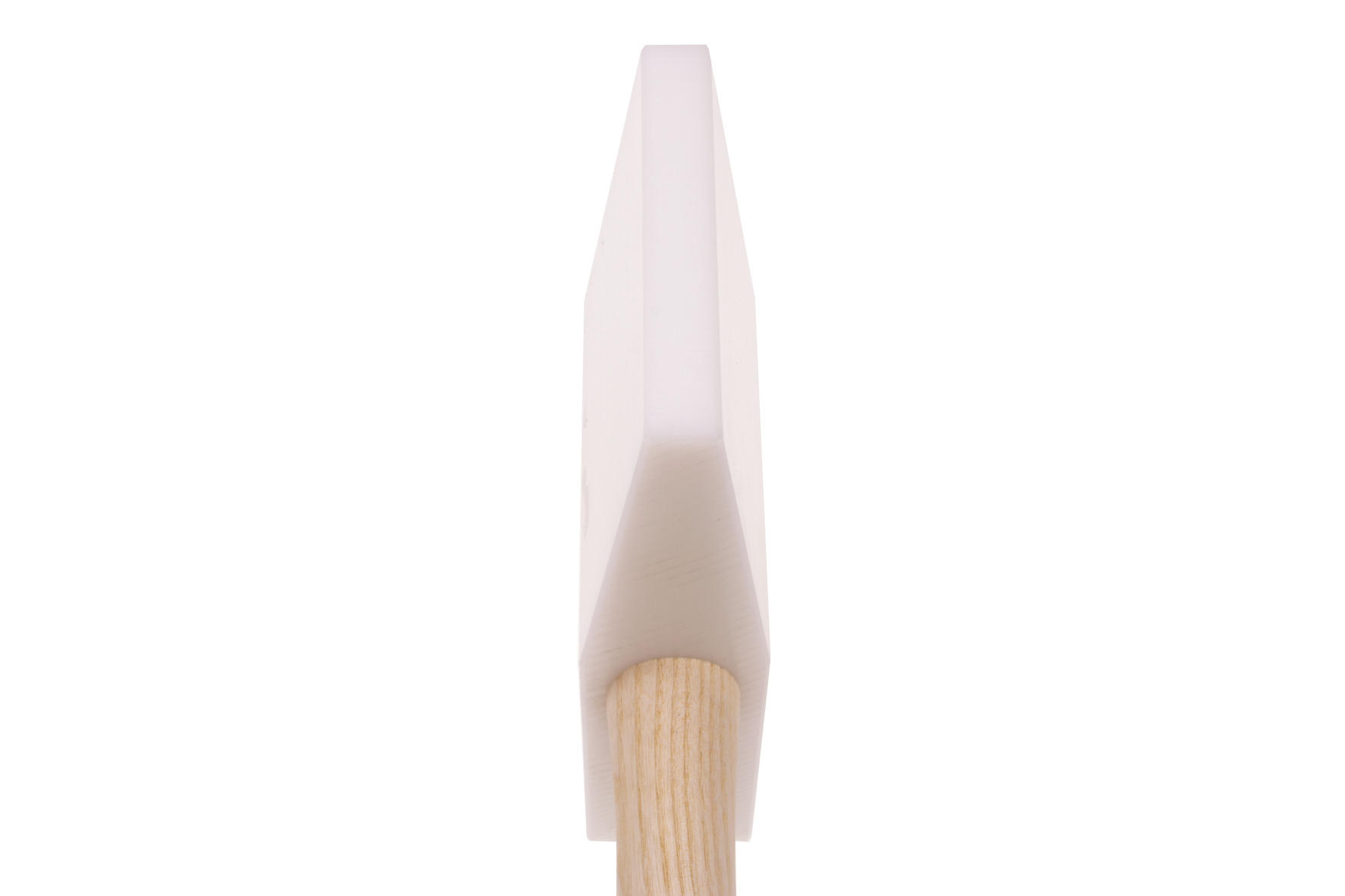 Hammerkopf in Keilform, aus verschleißfestem Kunststoff, hochschlagfest (splitterfrei), Kanten abgerundet, zusätzliche Verschraubung zur Stielbefestigung.