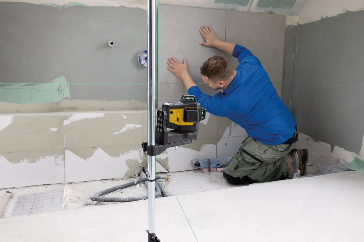 - Für Fliesenarbeiten - beim Anlegen eines Fliesenspiegels und beim Ausrichten und Verlegen von Fliesen.