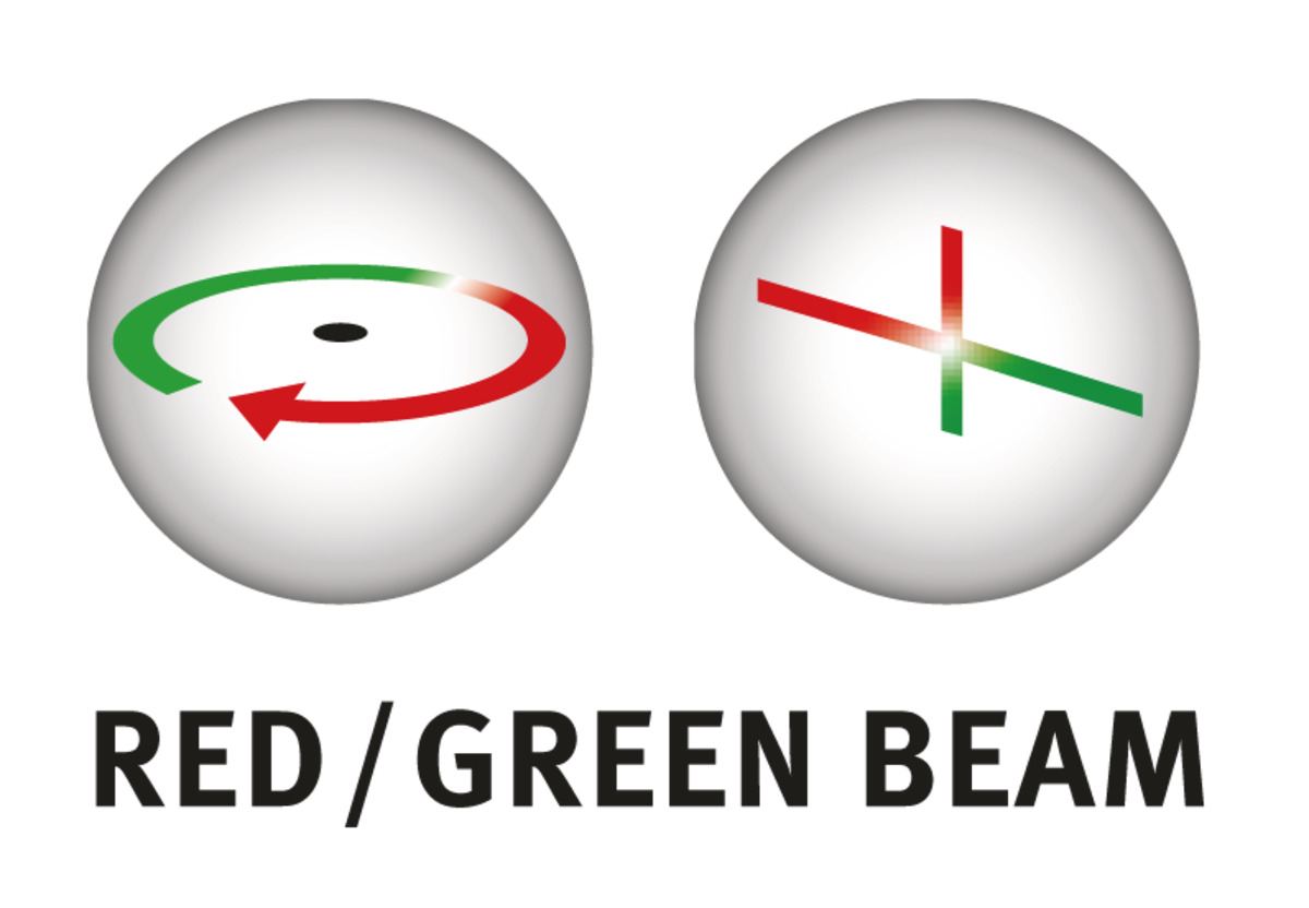 - Visuelle Anzeige mittels Pfeil-Symbolen im Display zeigt die Lage des Receivers relativ zur Referenzebene des Lasers – zuschaltbare mehrfarbige LED-Zielführung (rot, orange, grün).