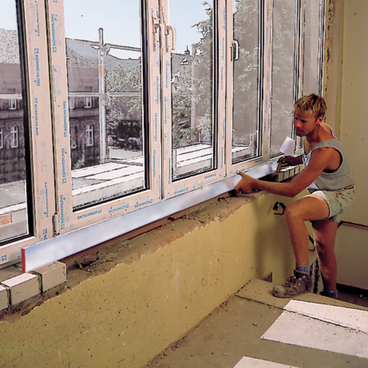Richtscheit zum Ausgleichen und Abziehen von Baumaterial.