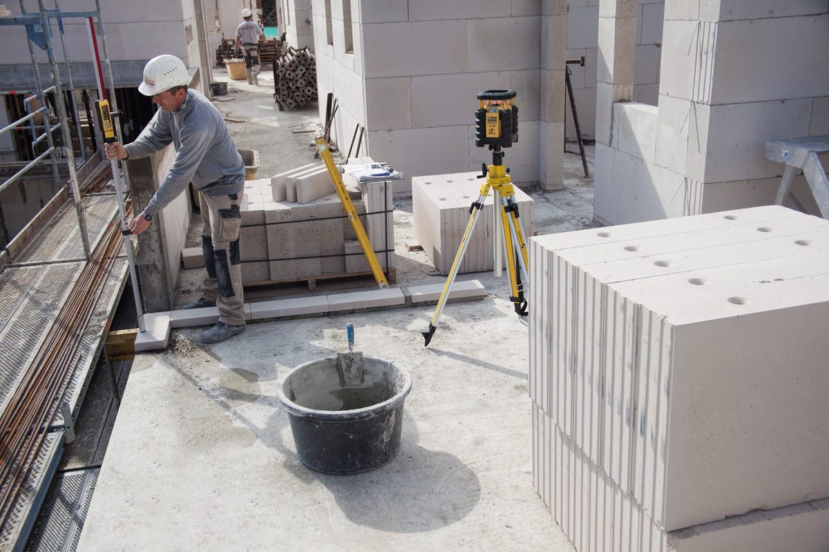 - Im Stahlbetonbau - Betonieren von Fundamenten oder Einrichten von Schnurgerüsten.