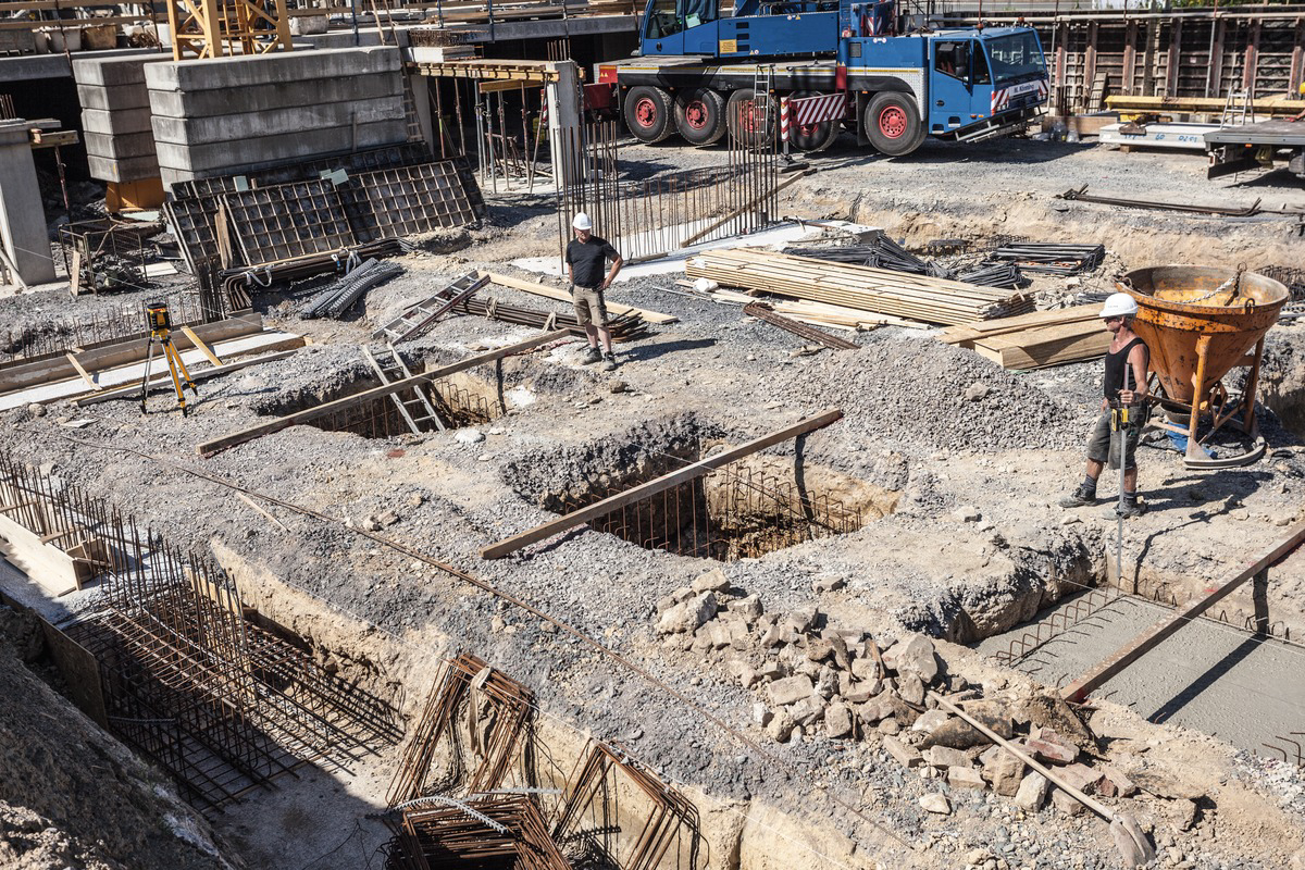 - Im Stahlbetonbau - Betonieren von Fundamenten.